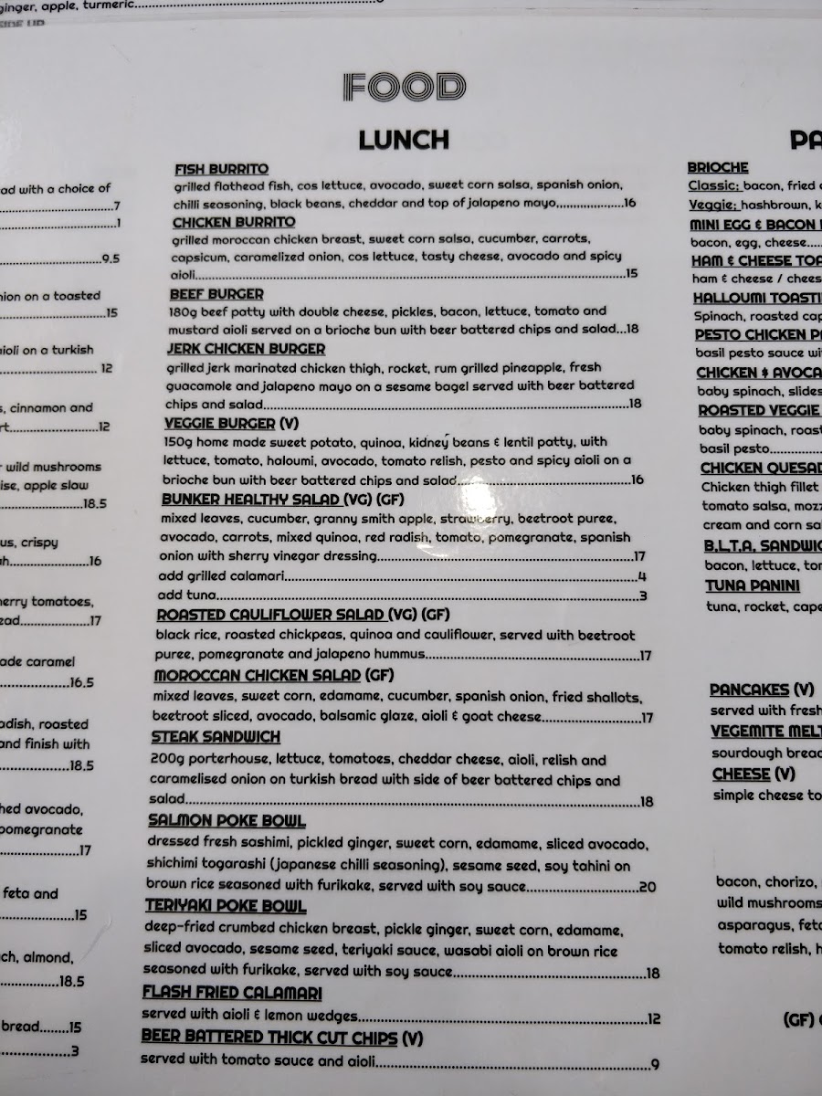 The standout menu items include the mouthwatering Bunker's Bagel Special, featuring a perfect blend of chili jam, crispy bacon, and a fried egg, all cradled in a freshly baked bagel. Also worth trying are their vibrant smoothies, like From The Earth, packed with wholesome ingredients for a nutritious boost.